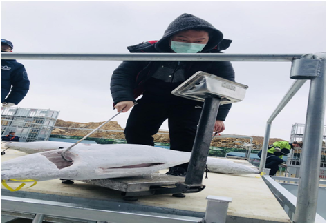 由于出差卸魚人手不夠,他在做好本職工作的基礎(chǔ)上,主動(dòng)提出自己有出海經(jīng)驗(yàn),隨時(shí)可以替補(bǔ)上陣。丁振民同志一去便是連續(xù)一周的高強(qiáng)度卸魚工作,他沒有抱怨、不喊苦累,全力以赴協(xié)助團(tuán)隊(duì)圓滿完成了魚貨卸載任務(wù)。