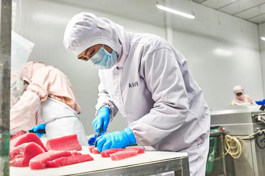 堅持把黨建工作融入生產經營,為企業發展聚能量、添活力。創新“一根線”精細工作法。在金槍魚POKE產品切條機生產線上創新“一根線”精細工作法,使產品出成率提高4%,全年提高純利逾60萬元。創新“冬冬公式”。由張冬冬總結的“效益=實踐+動腦”工作模式,堅持“每天對標,每周比較,每月找差”的原則,形成工作思路、理出項目清單、制定工作舉措、限定時間節點、確定責任人等措施,把目標具化為任務、任務細化為進度,倒逼崗位圍繞目標做、盯著清單干,實現了減人工增工效,提產量保質量,投工與去年同期減少13%,利潤增加152萬元。創新“五快課題”。確定產得快、冷得快、裝得快、灌得快、切得快“五快”研發課題由5名共產黨員帶領研發。“產得快”課題通過在金槍魚POKE產品生產線上創新,實現首條自動化生產線,每年節約人工費約100余萬元;“冷得快”課題通過研發VC溶液低溫防菌裝置,保證產品質量,提高產品出口達標率。“裝得快”課題實現了鰹魚、長鰭裝柜機械化,提高裝柜作業效率;“灌得快”的課題研發是通過對灌裝機升級改造,使碎肉產品轉化成CUTLET產品,豐富了金槍魚產品類型,實現產品增值;“切得快”課題通過研發全自動數控切割機,實現金槍魚切塊自動化標準化生產,每年節約人工費用達40余萬元。“五快”課題投入累計增值達206萬元。