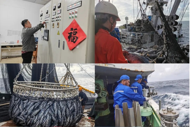 這是春節期間,中魯人堅守崗位的一個縮影。中魯食品公司值班人員24小時堅守陣地,針對防寒防凍等薄弱環節加強設備巡檢專檢,發現問題及時解決,為節日期間生產任務安全高效完成保駕護航。冷藏運輸船新懋榮輪春節期間在圖瓦盧裝貨金槍魚,船員們加班加點有序開展工作,以船為家、堅守崗位。公司14艘延繩釣船均在坦桑尼亞合作區生產,全船日均產量均在1噸以上。圍網船“泰隆7”“泰隆9”兩輪在中西太海域有序作業,開年首月兩船實現產量2000余噸,其中“泰隆9”輪獲得單網次235噸的優異成績。“魯青遠漁161”“魯青遠漁162”在秘魯漁場北部作業,產量穩中有升。