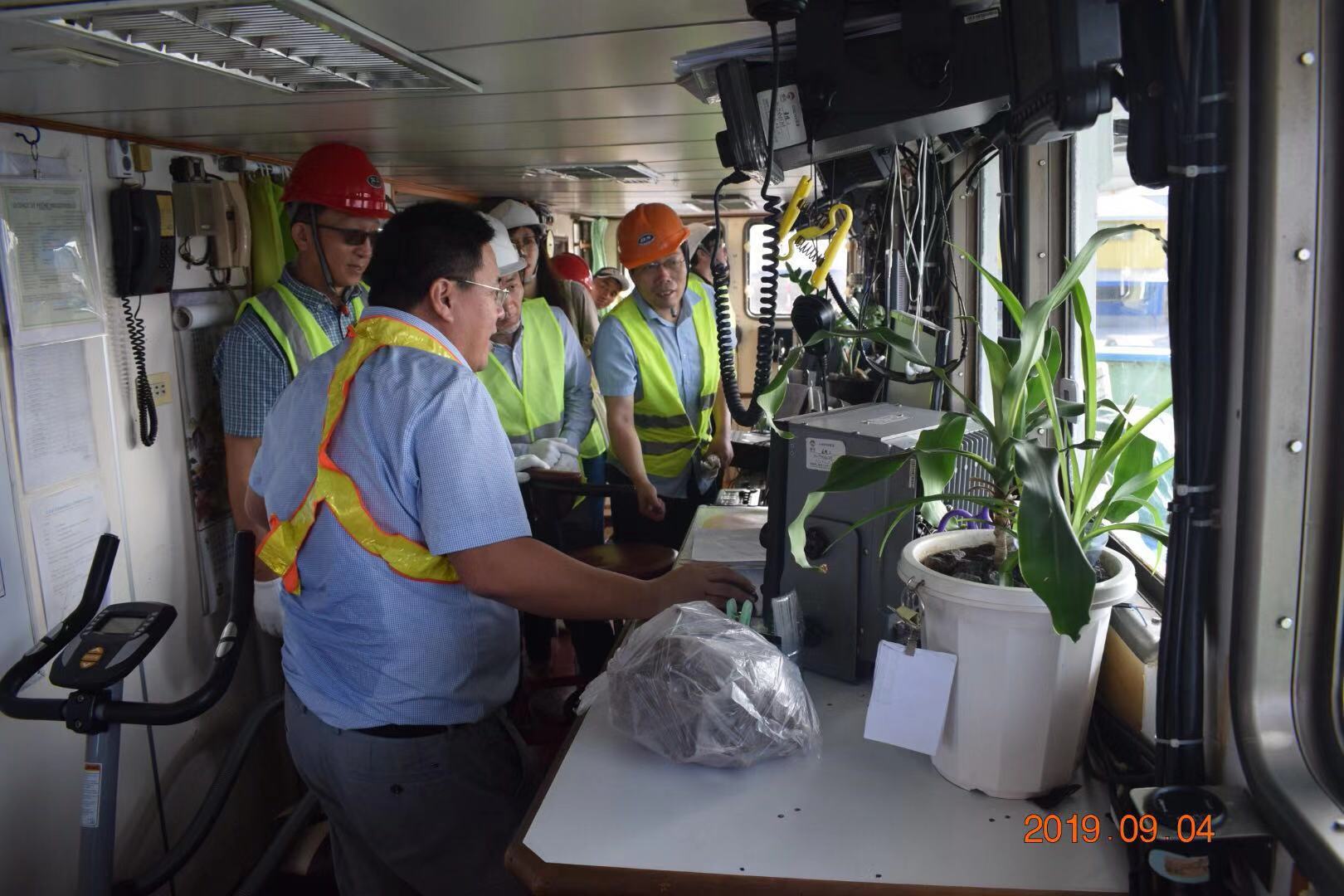 在特馬漁港碼頭,柴參贊興致高昂地登上了公司大型圍網(wǎng)金槍魚(yú)捕撈船,觀看船員們現(xiàn)場(chǎng)卸貨,了解公司船只情況。柴參贊指出,這是他自就任經(jīng)商處參贊以來(lái),第三次到訪中魯加納代表處,每次參觀都能直觀感受到公司取得的新進(jìn)展、新成績(jī),這離不開(kāi)代表處全體工作人員的付出和努力。他強(qiáng)調(diào),在“一帶一路”和海洋強(qiáng)國(guó)建設(shè)背景下,非洲圍網(wǎng)金槍魚(yú)捕撈項(xiàng)目的戰(zhàn)略地位日益凸顯,受到國(guó)家高層領(lǐng)導(dǎo)和中非人民的密切關(guān)注,希望加納代表處注重經(jīng)略海洋,做強(qiáng)做優(yōu)海洋經(jīng)濟(jì),把加納代表處的圍網(wǎng)捕撈項(xiàng)目打造成中國(guó)企業(yè)駐加納的精品標(biāo)桿工程。
