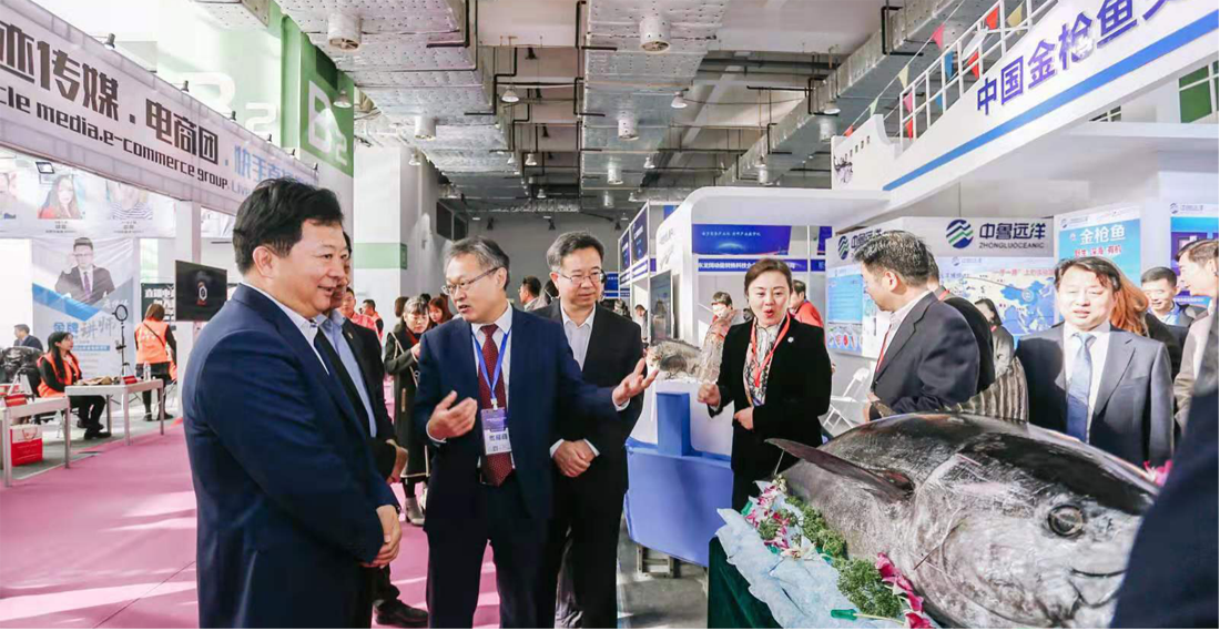 2019年10月25日,第五屆濟(jì)南電子商務(wù)產(chǎn)業(yè)博覽會(huì)曁第二屆泉城電商大會(huì)隆重開幕,中魯遠(yuǎn)洋公司展廳擺放的一尾重達(dá)100公斤的藍(lán)鰭金槍魚吸引了眾多來賓的目光。