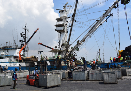 ——中魯海延公司做好年底收官工作 近日,一批批從加納回運的圍網魚貨通關后陸續卸載到加工廠,超低溫延繩釣漁船的魚貨轉載工作也正熱火朝天地進行...