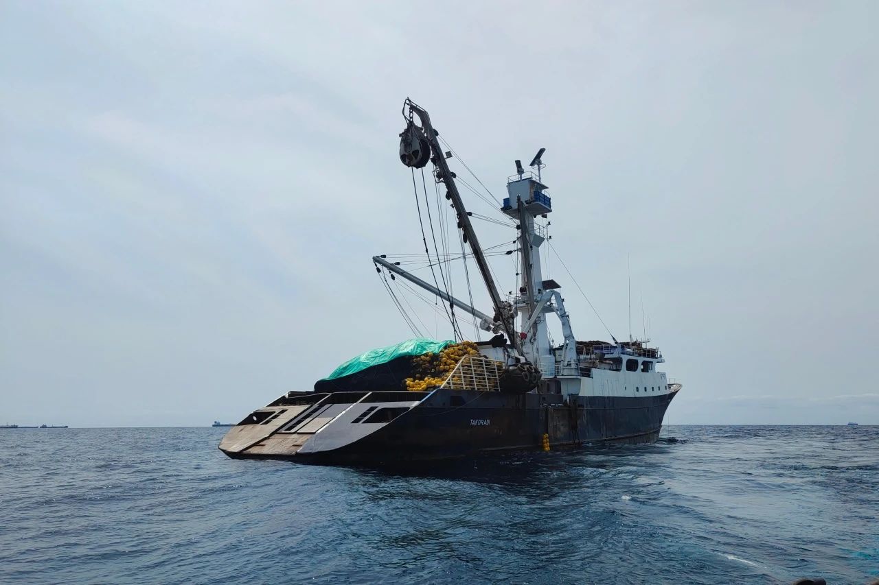 偵察魚群、前網頭下水、靠攏帶網工作艇、收絞綱索、起吊底環、絞收網衣、撈取漁獲、裝載…… 在歷經15個小時的全速前進后,中魯遠洋公司所屬“非洲...