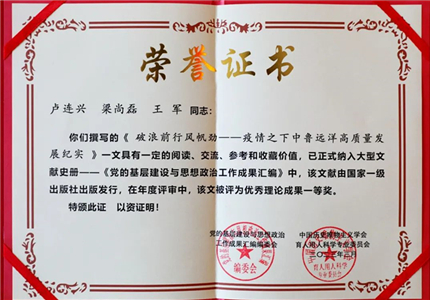 近日,中魯遠洋公司黨委報送的《破浪前行風帆勁--疫情之下中魯遠洋高質量發展紀實》一文,被正式納入由中共中央黨校出版社公開出版發行的大型文獻...