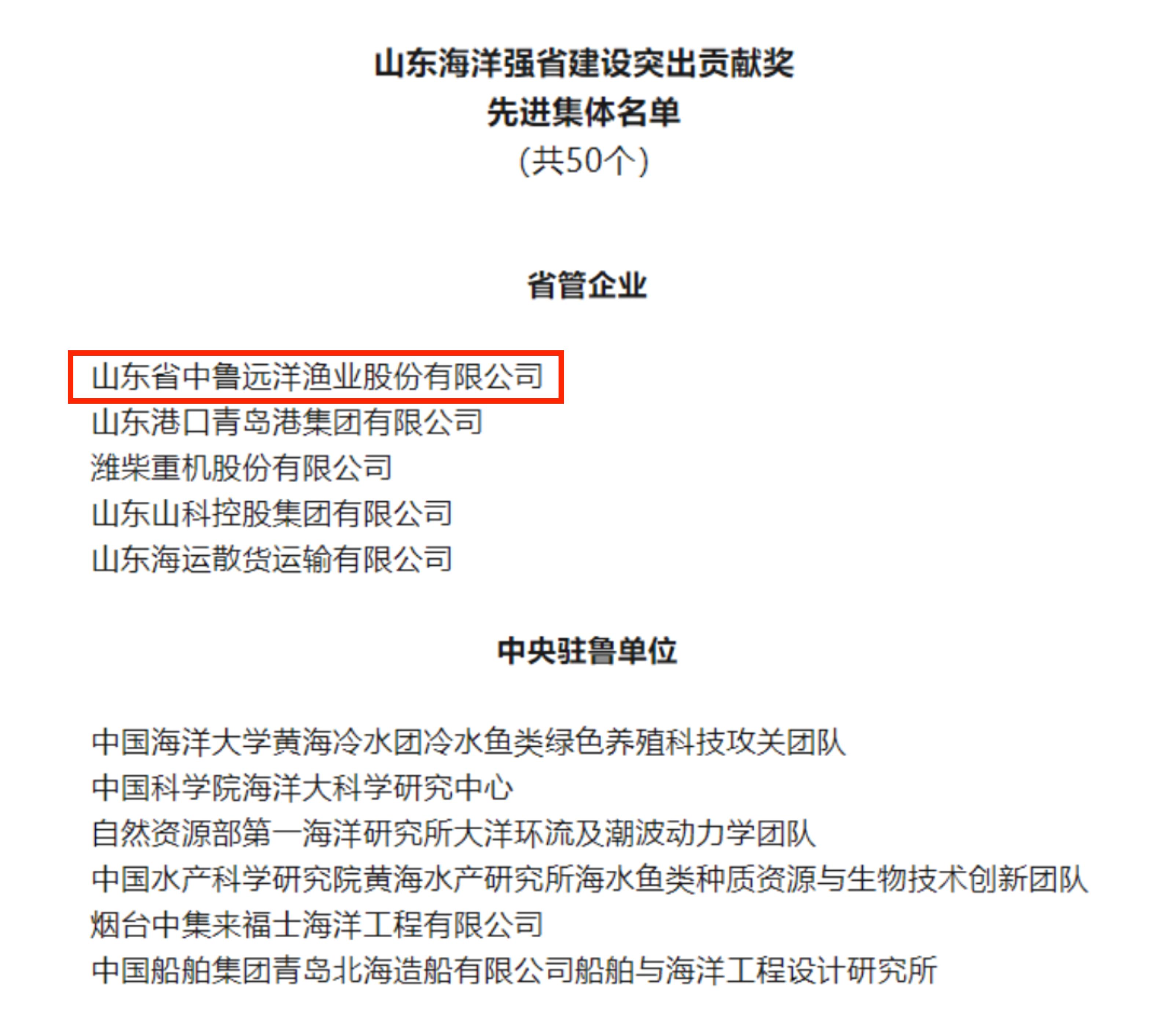 近日,為表彰在推進(jìn)海洋強(qiáng)省建設(shè)進(jìn)程中,積極履職盡責(zé)、主動(dòng)擔(dān)當(dāng)作為,為海洋強(qiáng)省戰(zhàn)略順利實(shí)施提供堅(jiān)實(shí)的基礎(chǔ)和保障的先進(jìn)集體和個(gè)人,山東省委、省政府印發(fā)《關(guān)于表彰山東海洋強(qiáng)省建設(shè)突出貢獻(xiàn)獎(jiǎng)先進(jìn)集體和先進(jìn)個(gè)人的決定》,中魯遠(yuǎn)洋公司榮獲“山東海洋強(qiáng)省建設(shè)突出貢獻(xiàn)獎(jiǎng)先進(jìn)集體”稱(chēng)號(hào)。