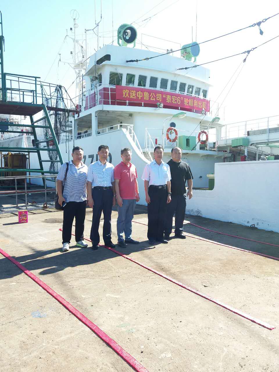 出航儀式上,中魯公司副總經(jīng)理隋建軾講話中表示金槍魚(yú)延繩釣生產(chǎn)是公司“一體兩翼,融合發(fā)展”的重要一部分,希望兩船在新航次生產(chǎn)中,充分展示“中魯人”的風(fēng)采,滿載而歸。同時(shí)認(rèn)真囑咐船長(zhǎng)輪機(jī)長(zhǎng)要安全第一,科學(xué)捕魚(yú)。期間在船上仔細(xì)檢查修船質(zhì)量,了解船員生活情況。