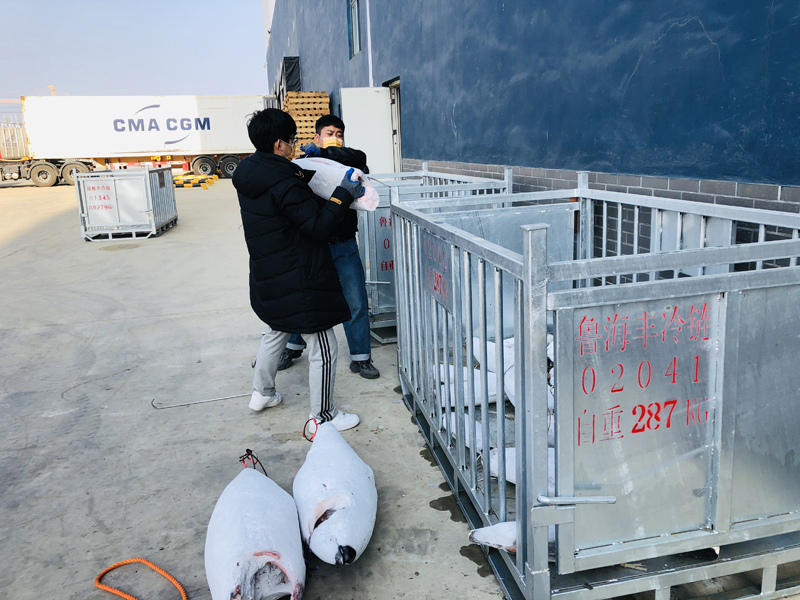 “來(lái)魚了,準(zhǔn)備卸魚!”一聲中氣十足的吆喝打破了冷庫(kù)的寧?kù)o,隨著滿載超低溫金槍魚魚貨的貨車進(jìn)廠,卸魚人員摩拳擦掌、圍上前來(lái),開始了新一輪的忙碌,冷庫(kù)里一派熱火朝天的工作景象。
