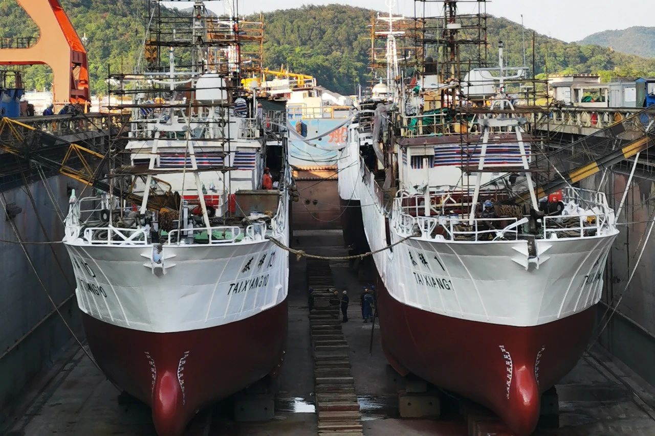 在舟山隆昇造船廠,中魯海延公司5艘超低溫延繩釣船順利出塢,這代表著近1個月的航修工程基本完成。 此次航修工程時間緊、任務重,為順利完成航修項...