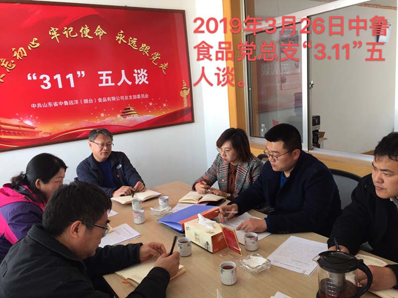 為加強過硬支部建設(shè),進一步發(fā)揮黨建引領(lǐng)作用,中魯食品黨總支創(chuàng)新黨建工作模式,于近日首次推出“311”五人談制度。黨支部書記和黨總支委員輪流作為談心發(fā)起人,利用業(yè)余時間組織“3名黨員+1名入黨積極分子+1名群眾”進行談心交流,以“相互平等、推心置腹,實事求是、突出實效”為原則,以“說真話建真言,辦真事做真人”為基本要求,通過坦誠交流,達到找差距、明責(zé)任、定方向、增動力的目的。
