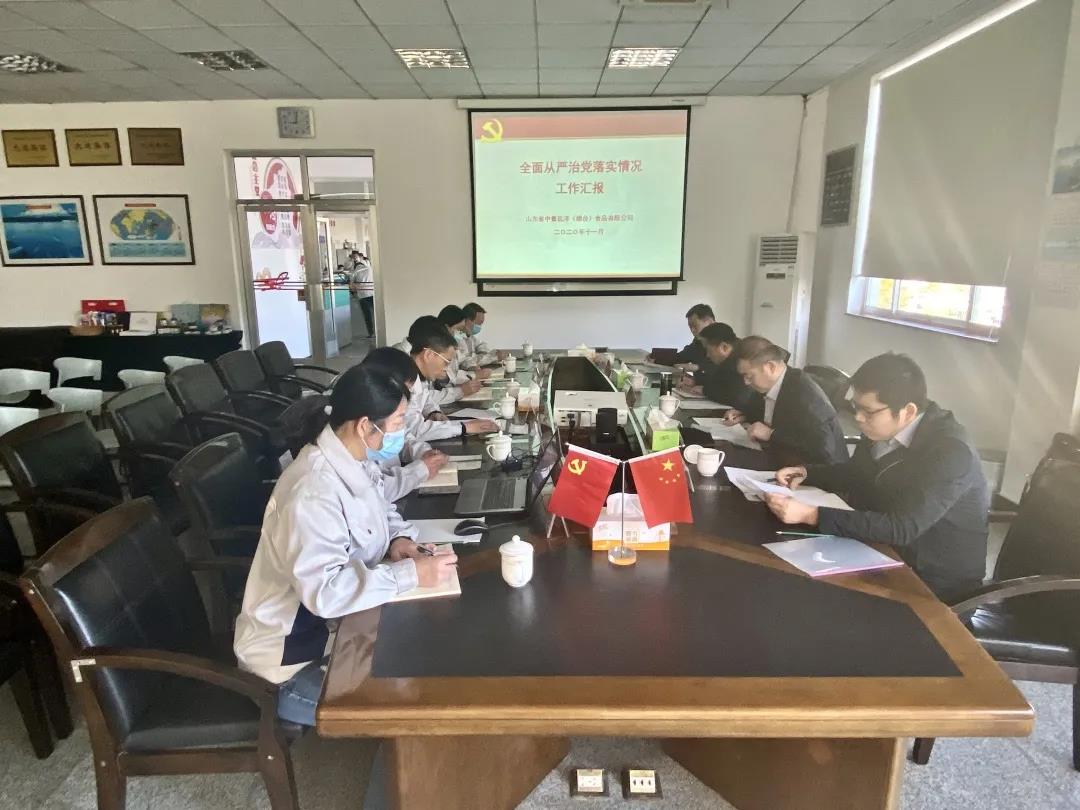 在聽取中魯食品黨總支書記徐志超的全面從嚴治黨工作情況匯報后,盧連興董事長對中魯食品的黨建工作及從嚴治黨工作取得的成效表示肯定,并提出要求。要求全體黨員干部深入學習貫徹習近平總書記系列重要講話精神,堅決落實省委巡視整改專題督導調研關于全面從嚴治黨工作的部署,進一步深化認識、壓實責任、嚴格執紀,提高政治站位,高度重視落實全面從嚴治黨主體責任中存在的問題,找準問題癥結,深挖問題根源,采取強有力措施,確保整改到位。對出現的問題不遮掩、不推諉,真反思、真整改,查漏補缺,建章立制,以上率下,以身作則,旗幟鮮明講政治,壓緊壓實真整改。促進全面從嚴治黨和企業發展兩手抓兩手硬,為企業高質量發展提供有力保障。