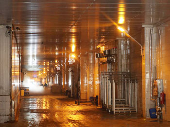 公司擁有國(guó)內(nèi)規(guī)模強(qiáng)大的1萬(wàn)噸的-60℃超低溫冷庫(kù)、3萬(wàn)噸超低溫可變溫冷庫(kù)和1萬(wàn)噸常溫冷庫(kù),打破了長(zhǎng)期以來(lái)日本在該領(lǐng)域的技術(shù)壟斷,年冷藏服務(wù)吞吐量可達(dá)20萬(wàn)噸。其中2萬(wàn)噸規(guī)模的-30℃可變溫常溫冷庫(kù),采用的鵝卵石防凍技術(shù)、可撞式緩沖門(mén)、制冷劑并聯(lián)等多項(xiàng)技術(shù)應(yīng)用。