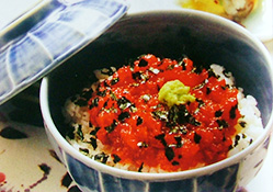 材料: 熱米飯4碗、金槍魚生魚片200克,紫菜、芥末各適量。 輔料A: 醬油1大匙,蛋黃1個。 做法: 1、用刀將金槍魚肉切碎,然后用A輔料攪拌調(diào)勻。 2、大